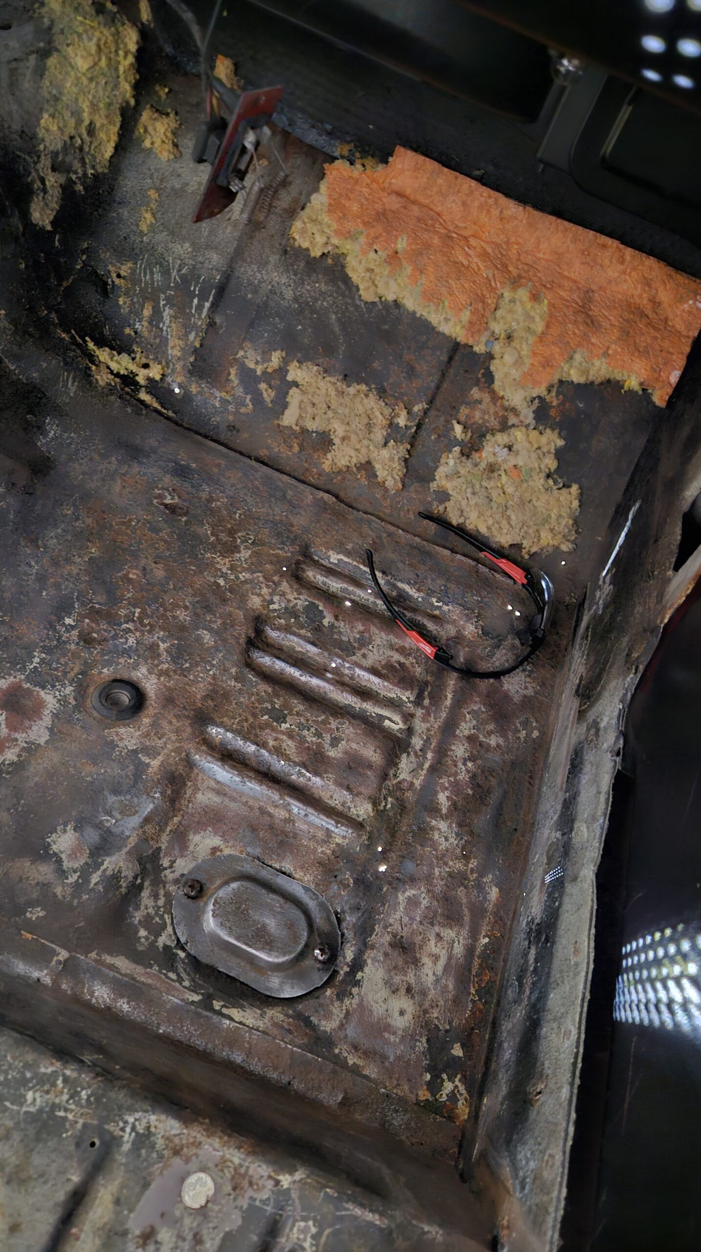 And this is what it looks like if you turn out all the lights and put a flashlight under the floor-pan: