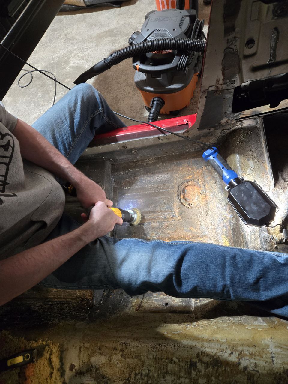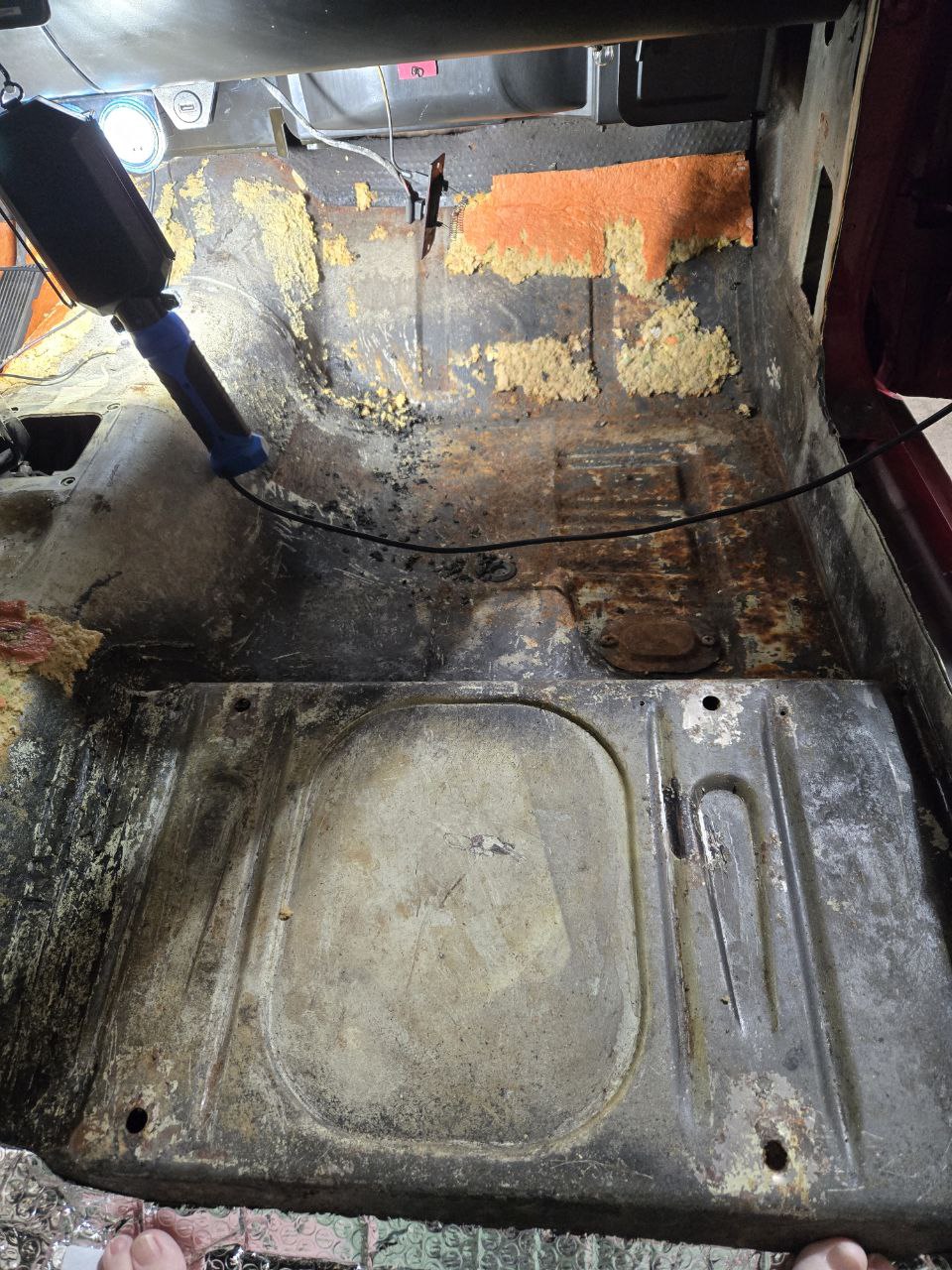 - Cover the entire floor with rust converter – this will chemically convert the rust to metal, adding life to the floor-pan