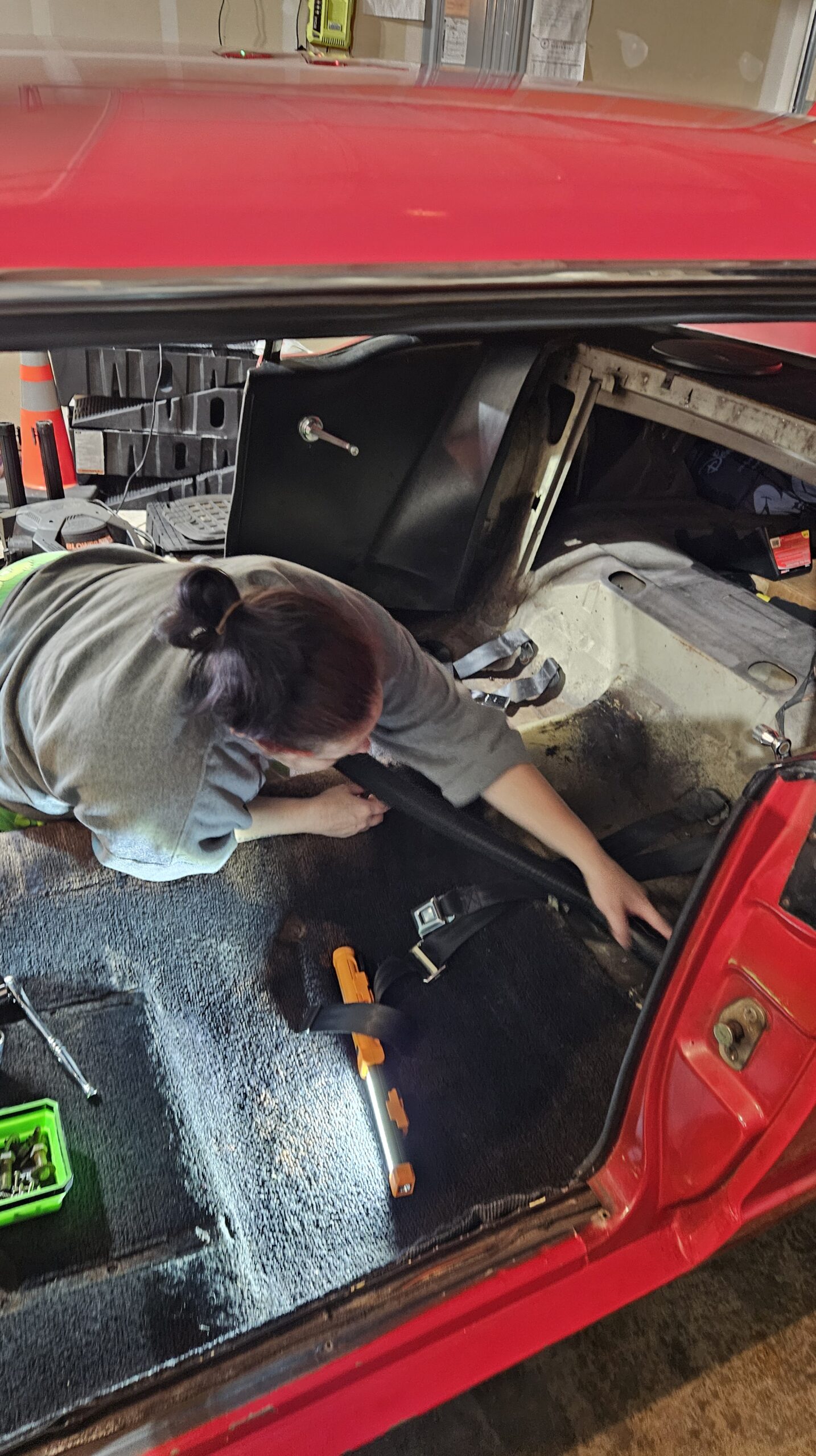 The point here is not necessarily to install the new carpet – yet – that will come with time, but to inspect the floor of the car for rust.