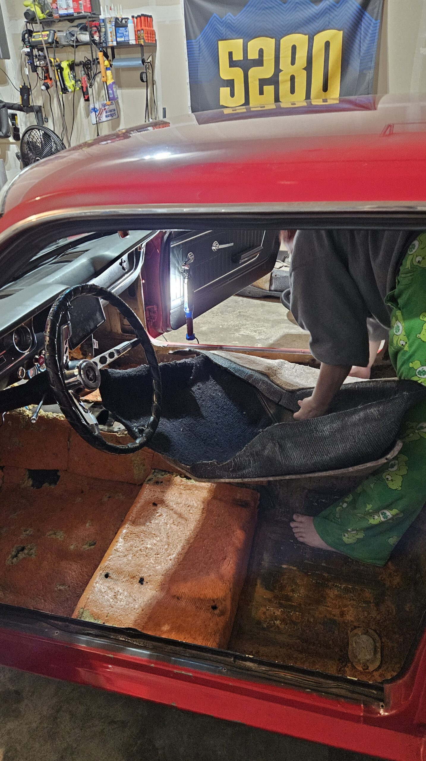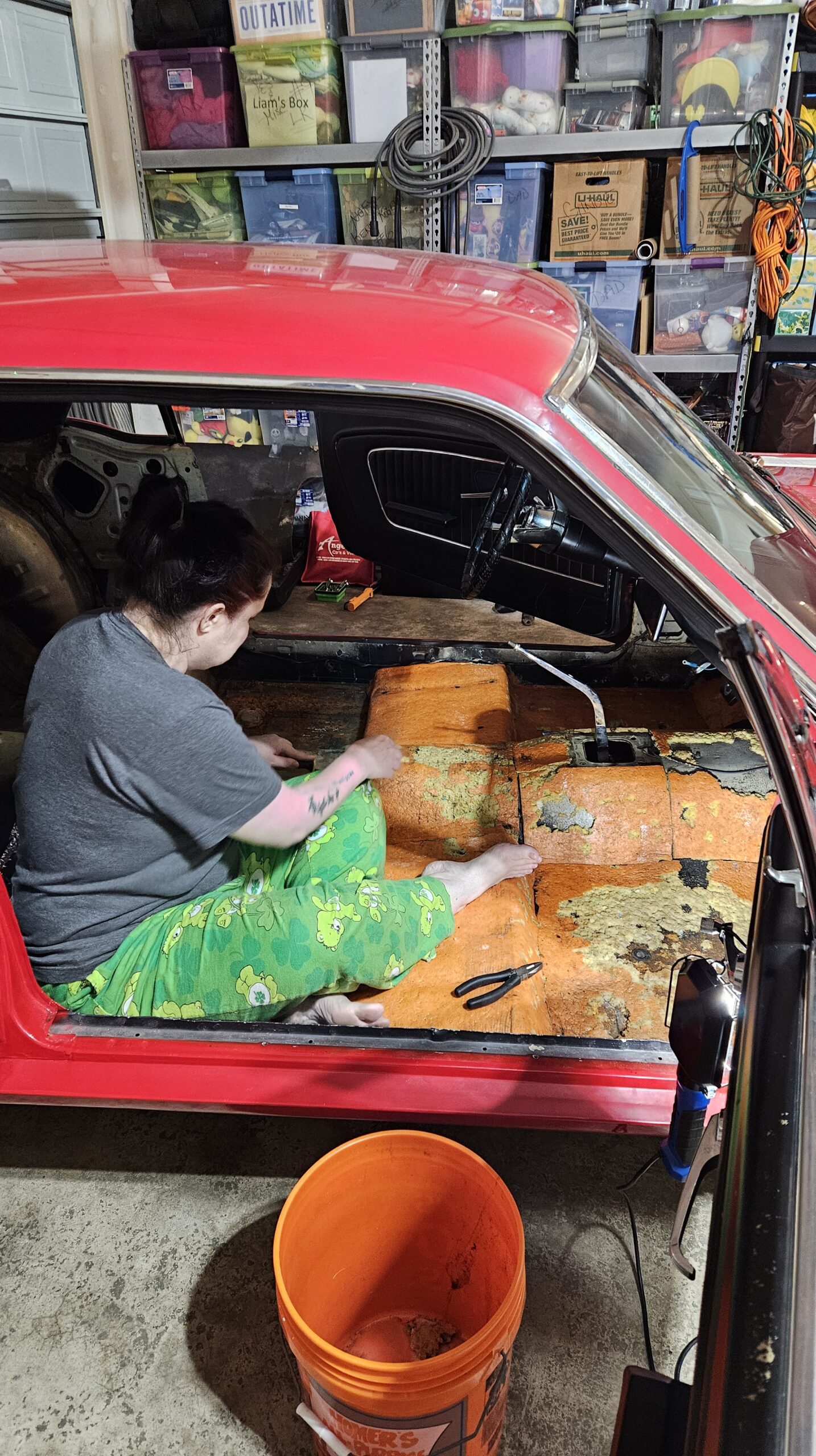 Point here is: My wife is going to spend all week scraping that glued-on dynamat (it’s purpose is to reduce road noise, but the new carpet I bought has its own). After she scrapes off the bulk of it, I’ll try to hit it with some brass brushes. Get it down to bare metal.
