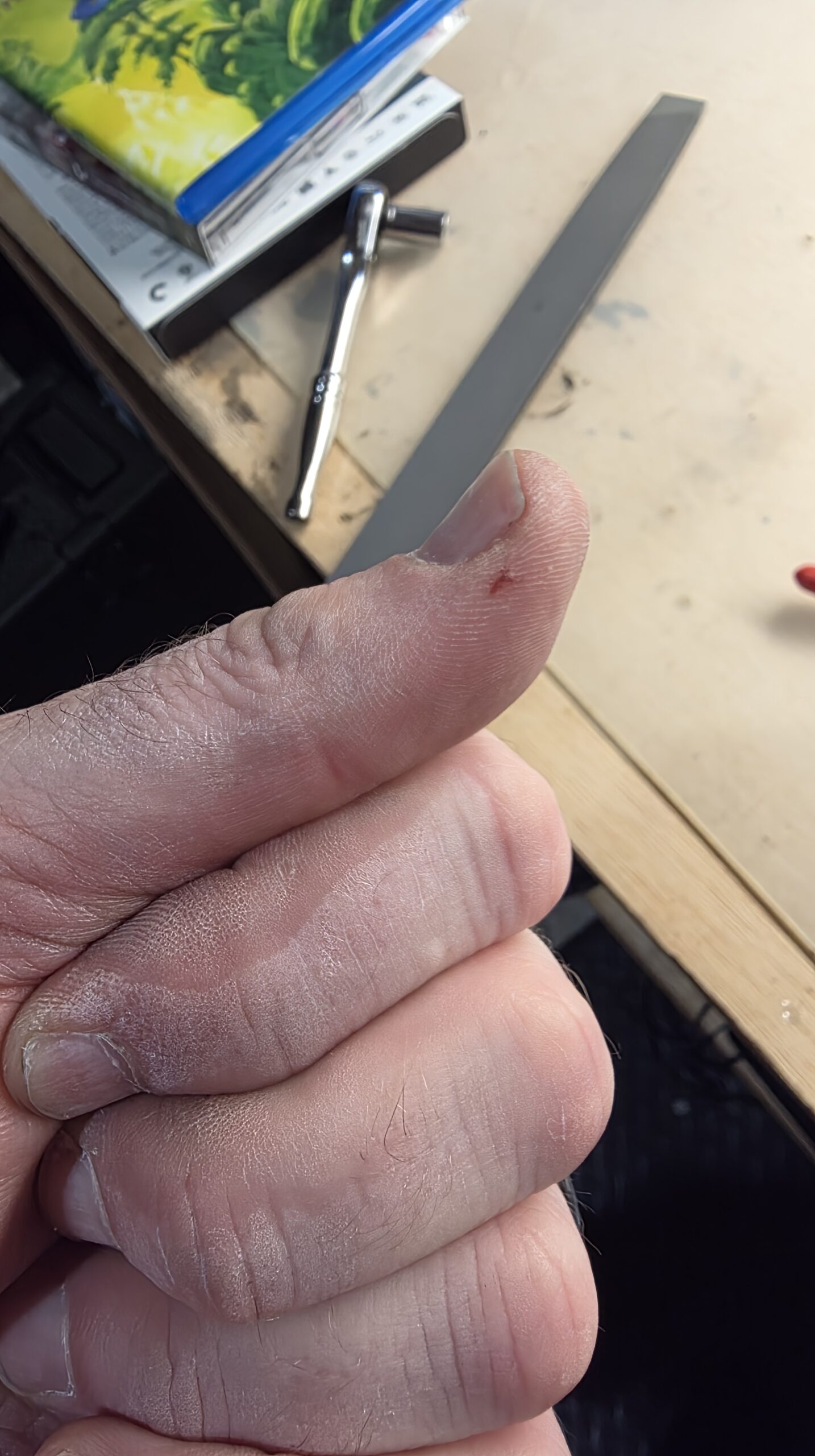 Once we got it out of the car, my wife immediately grabbed it from me and went to town with some 99% isoprophol alcohol, some Q-Tips, and a toothbrush.