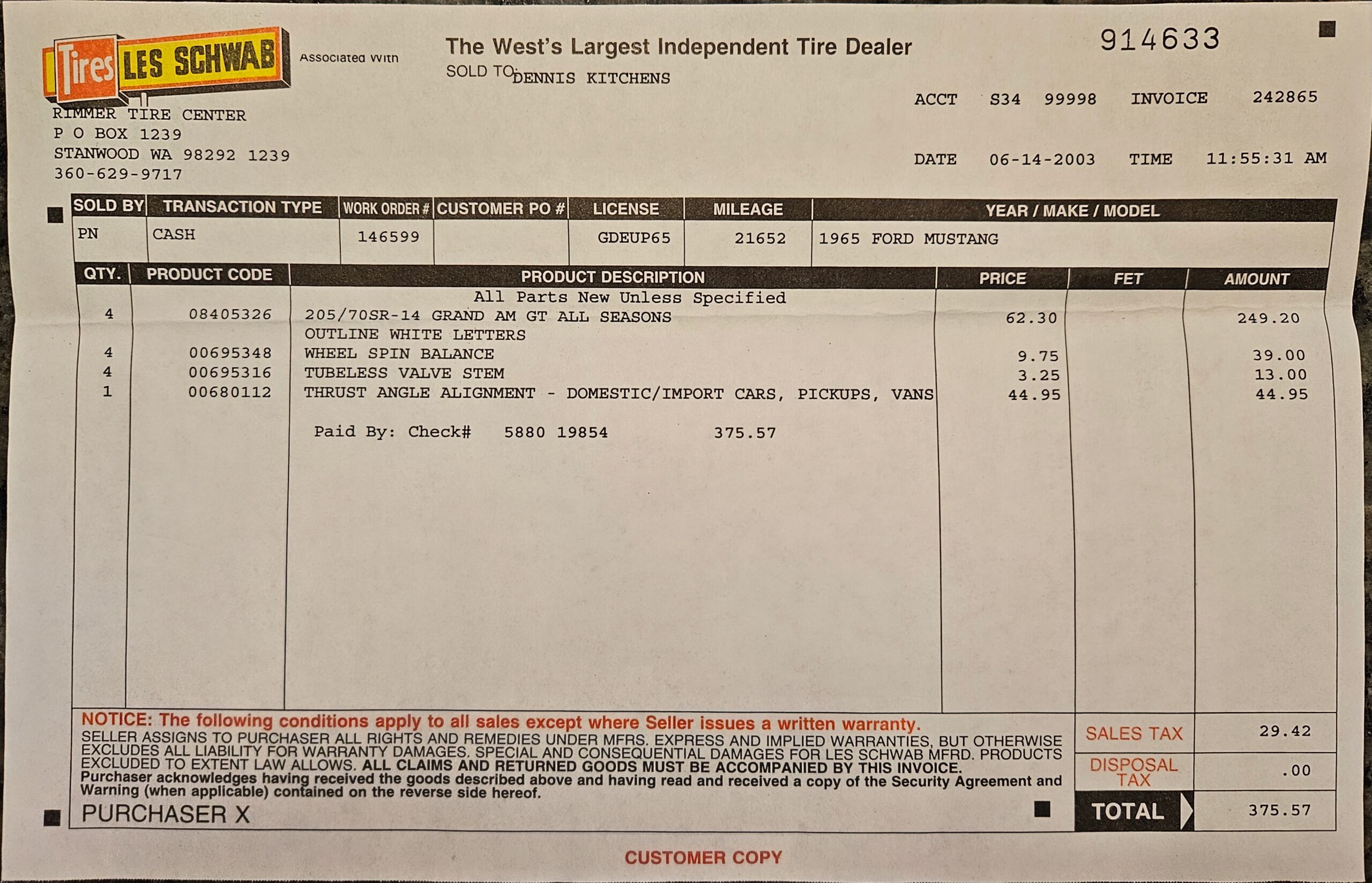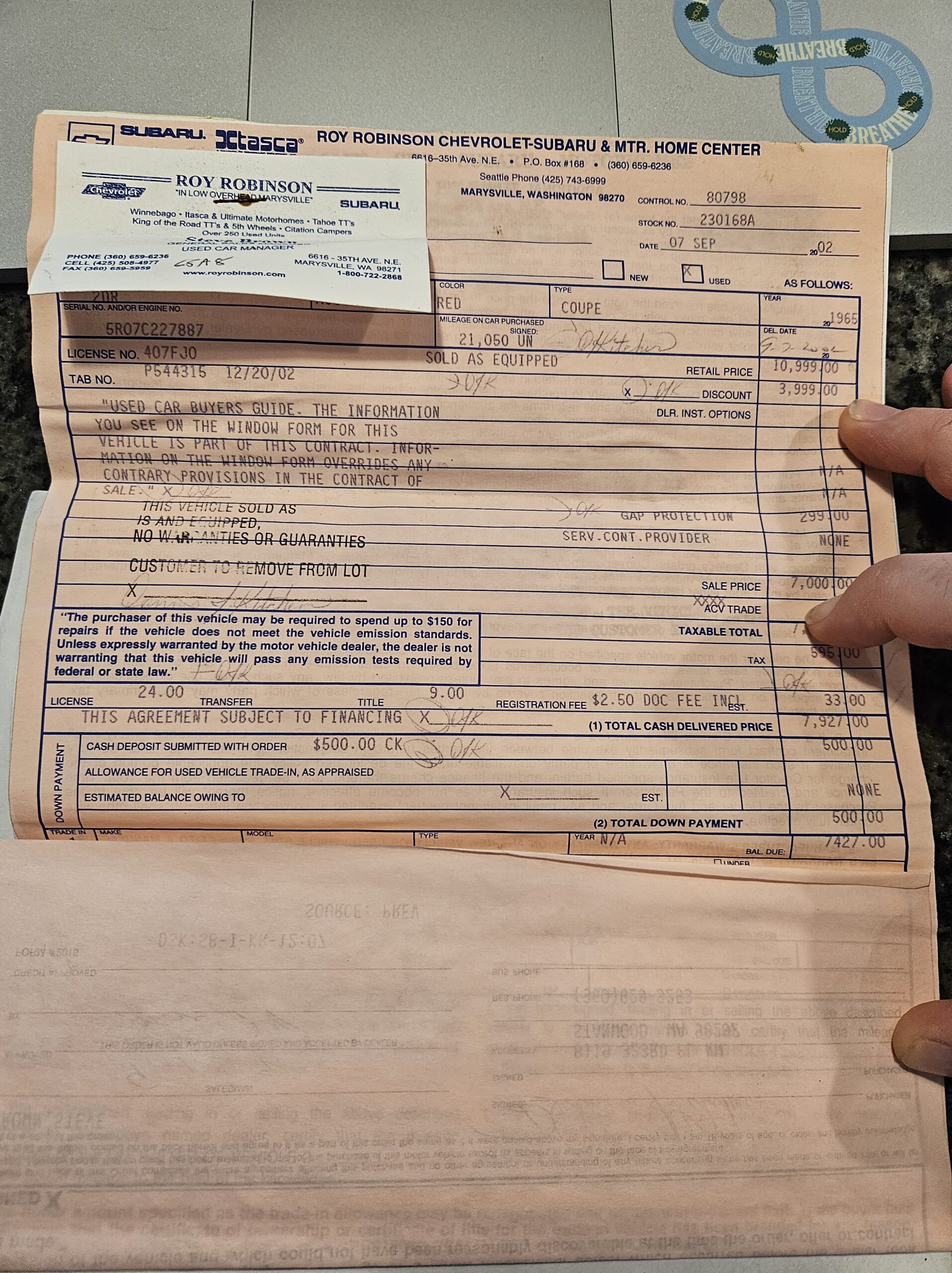 But the majority of the documentation in the glovebox was from a fellow in Stanwood, WA named Dennis J. Kitchen(s).