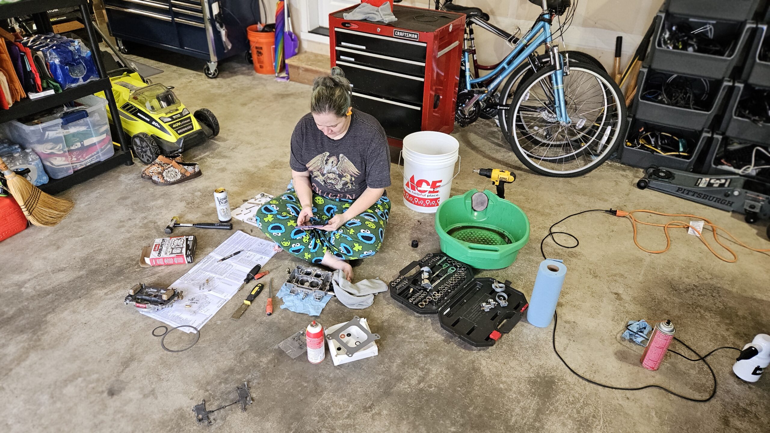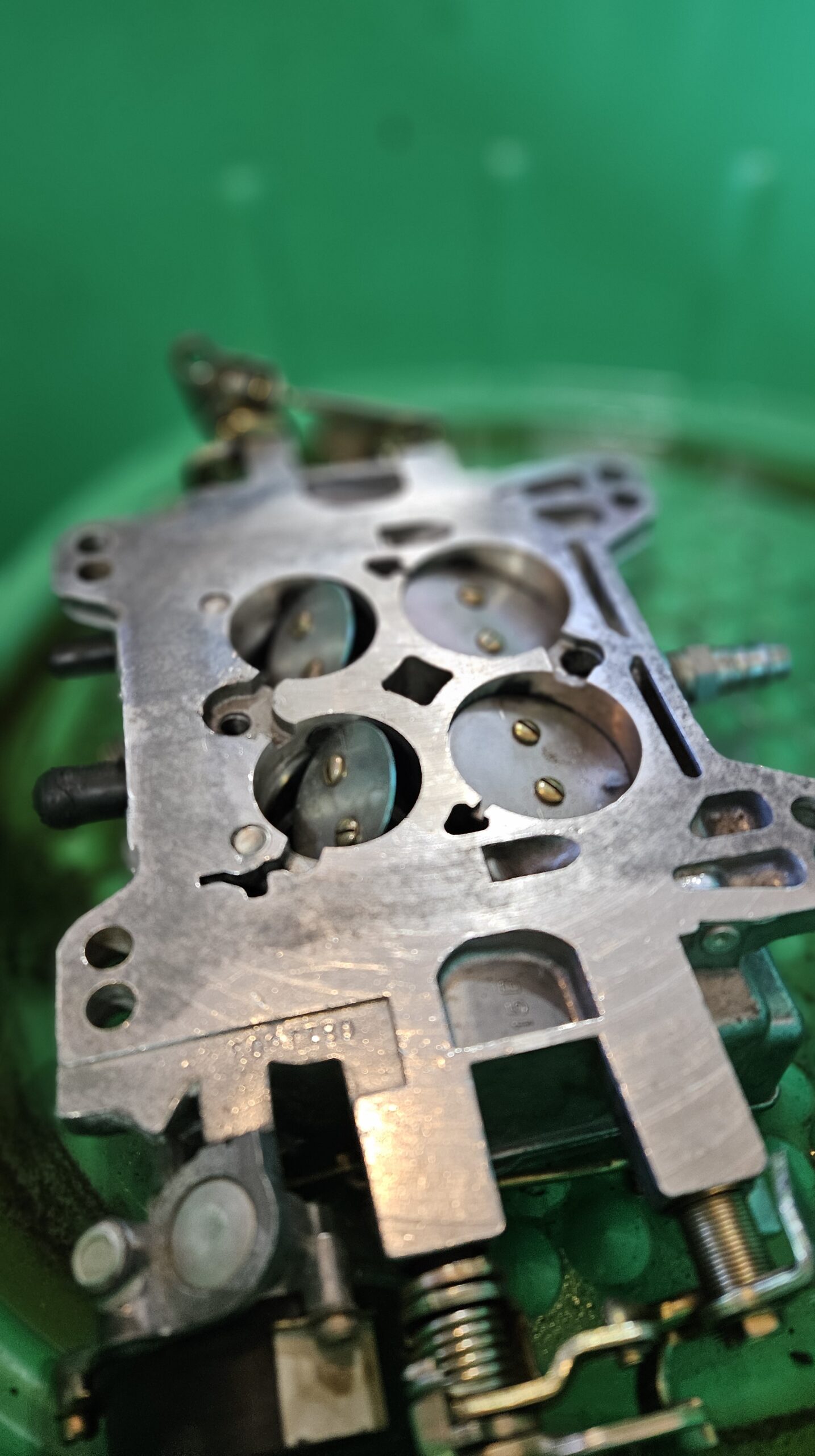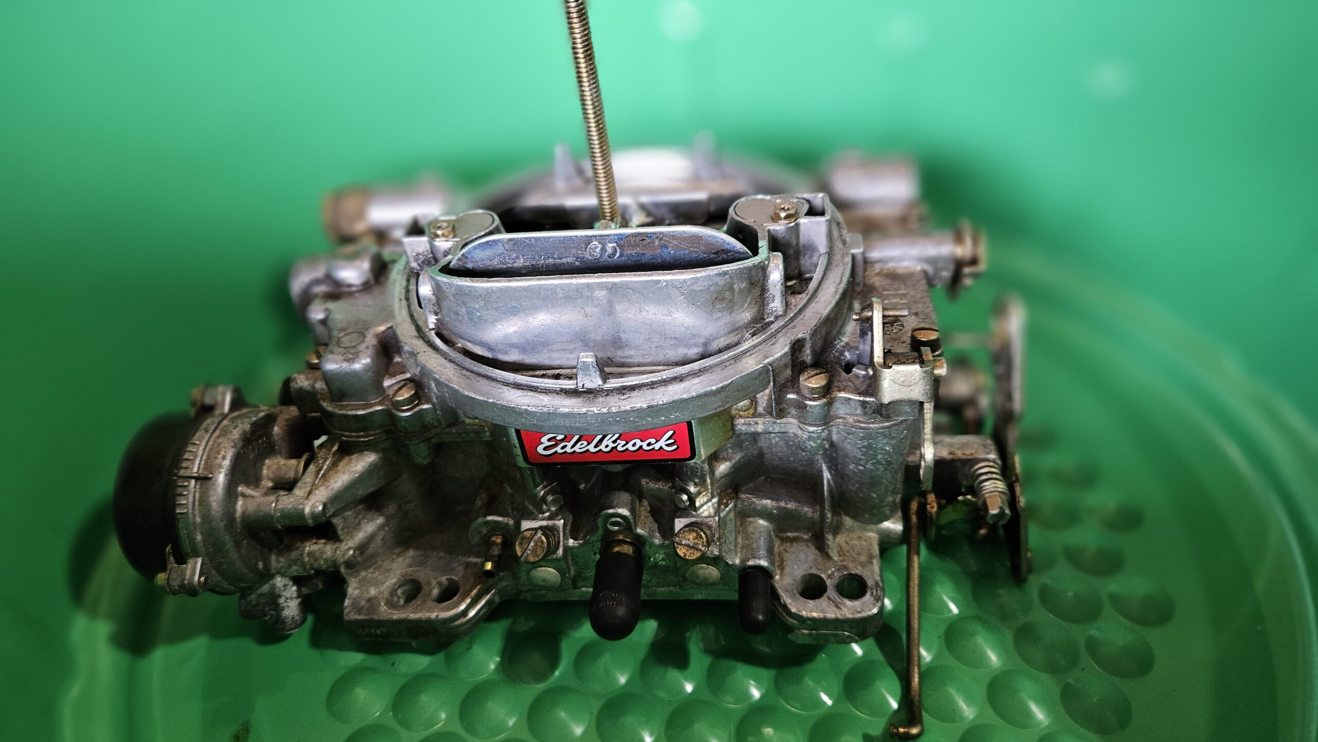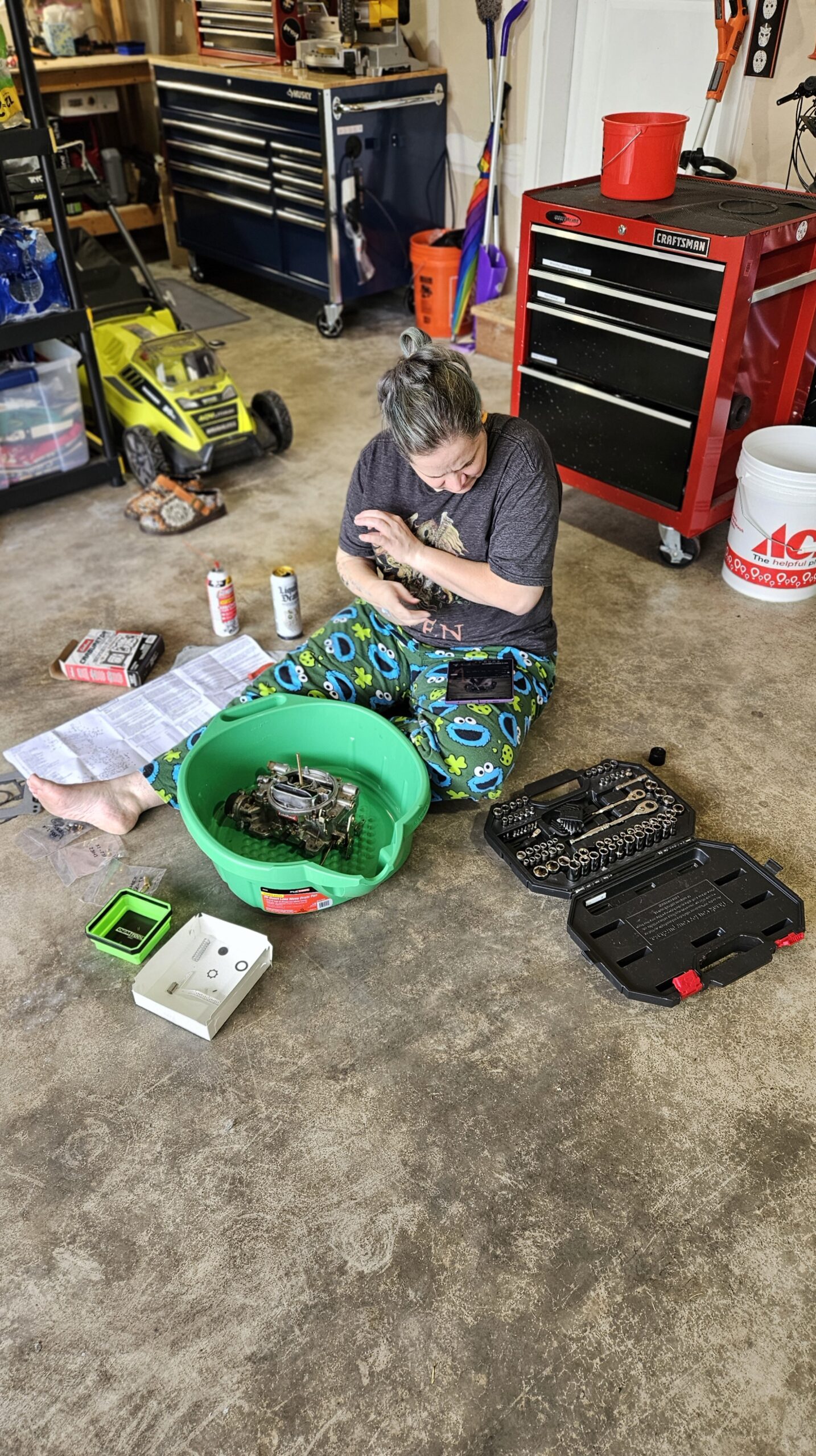 So, while we wait for her to dry up from the flooding, April decided to help me rebuild the carb with a brand new Edelbrock 1477 kit.